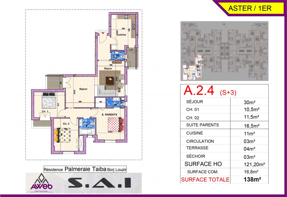 Les Palmeraies de Taïba - Immeuble ASTER : S+3 2EME ETAGE