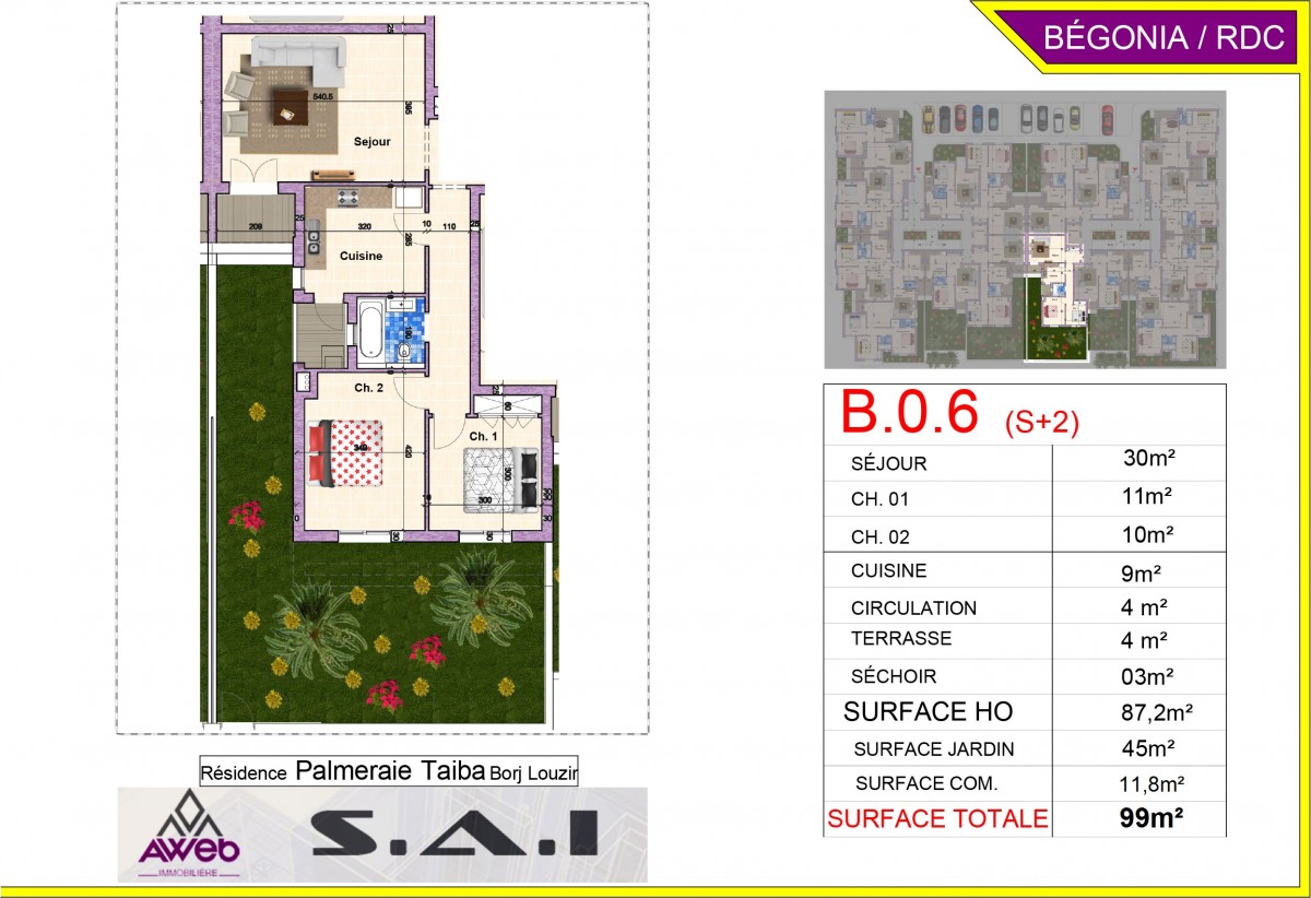 Les Palmeraies de Taïba - Immeuble BEGONIA : S+2 RDC